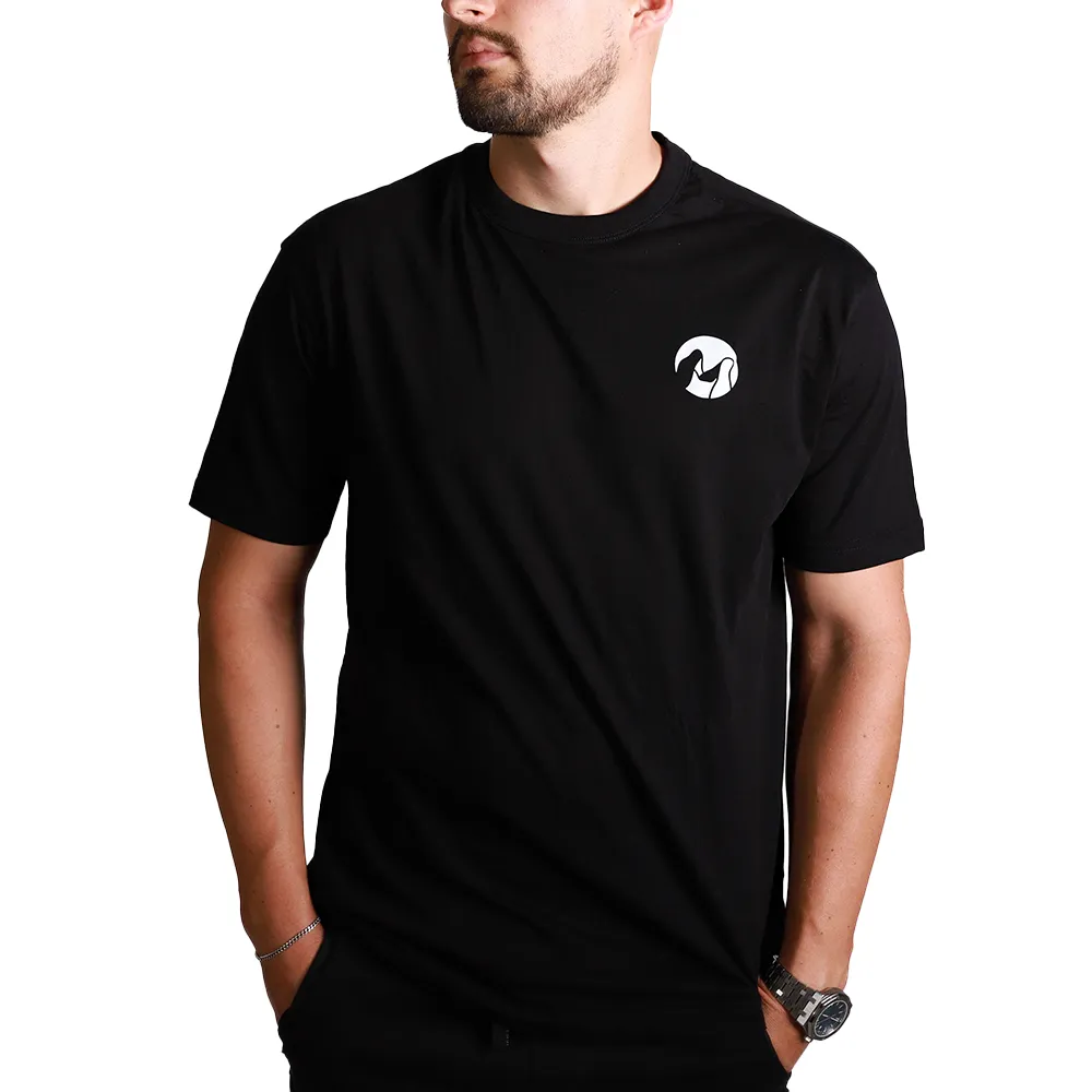 Prémium oversized streetwear póló egyedi mintával, fekete és fehér színekben.
